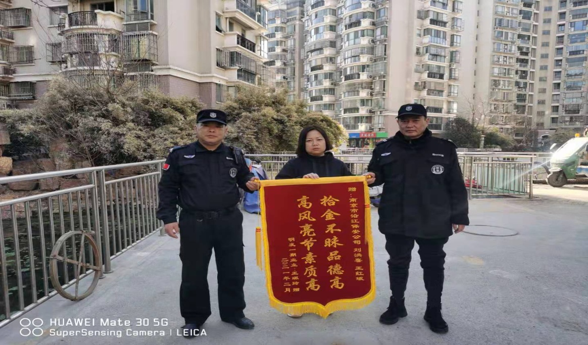 為給物業(yè)小區(qū)居民提供安全穩(wěn)定治安環(huán)境,保障居民度過一個(gè)安定祥和的新春佳節(jié),春節(jié)期間沿江保安服務(wù)有限公司保安加強(qiáng)物業(yè)小區(qū)門禁管控和巡邏檢查。2月17日19:20 駐明發(fā)濱城一期保安劉洪喜,王洪斌在對(duì)小區(qū)巡檢時(shí)在路邊發(fā)現(xiàn)一個(gè)黑背包,拿到崗?fù)?,打開后發(fā)現(xiàn)里面有現(xiàn)金約萬元,還有手機(jī)、銀行卡、身份證等物品。兩人在小區(qū)尋找失主未果,怕失主著急,立即報(bào)警。幾分鐘后110出警到現(xiàn)場,這時(shí)業(yè)主也到門衛(wèi)來詢問,當(dāng)場警察與業(yè)主對(duì)包里的物品進(jìn)行確認(rèn),核實(shí)后將背包交還失主。失主萬分感動(dòng),立即從包里拿出一沓錢要獎(jiǎng)勵(lì)保安,被保安婉言謝絕。2月20日失主送錦旗對(duì)保安這種拾金不昧的精神表示感謝。