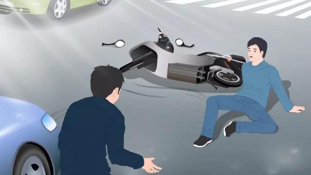 小強(qiáng)騎著電動(dòng)車闖紅燈,無暇顧及一輛輛汽車呼嘯而過,一輛轎車躲閃不及,一下子將他撞倒在地。